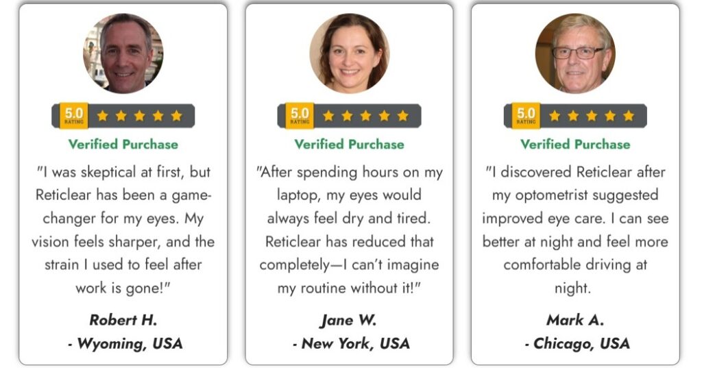Reticlear is a powerful product designed to help regenerate eye tissue and restore your vision. Using advanced technology, it taps into your body’s natural ability to heal and rejuvenate your eyes. Whether you’re facing issues like macular degeneration, glaucoma, cataracts, or other vision problems, Reticlear offers a safe and natural way to improve your eyesight.